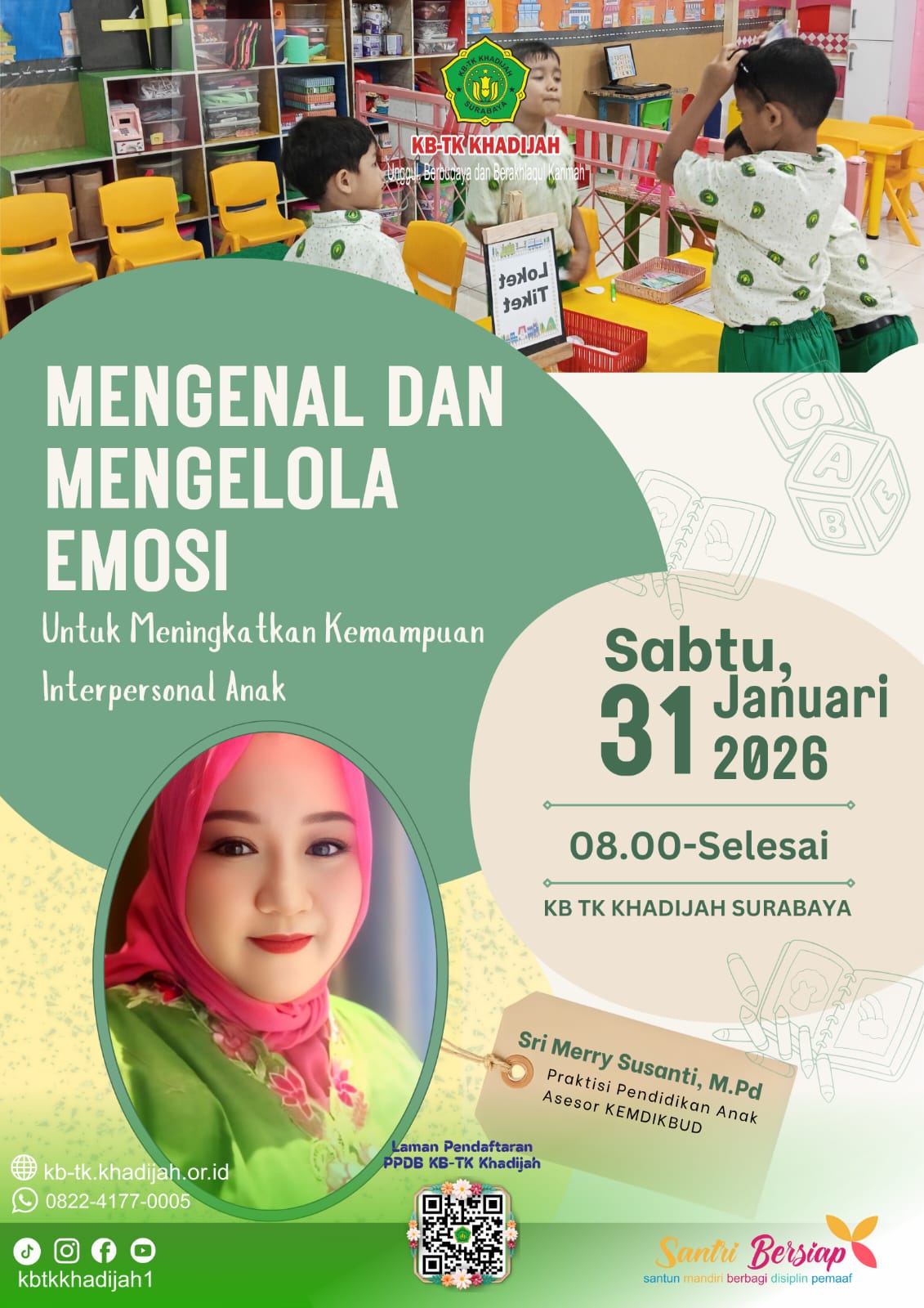 Surabaya – KB–TK Khadijah menyelenggarakan kegiatan parenting bertema “Mengenal dan Mengelola Emosi” pada tanggal 31 Januari 2026. Kegiatan ini dilaksanakan di lingkungan sekolah dan diikuti oleh seluruh wali murid KB–TK Khadijah dengan penuh antusias.